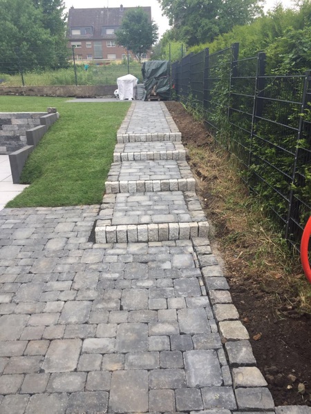 Besichtigung vor Ort Planung der Gehwege und Flächen Anlage von Pflasterflächen mit Naturstein Pflege bestehender Pflaster Reparaturen
